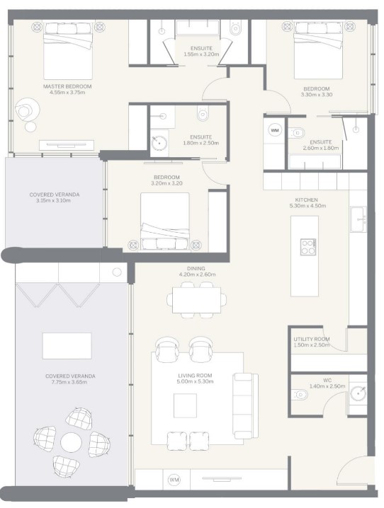 - Expansive balconies and covered terraces
